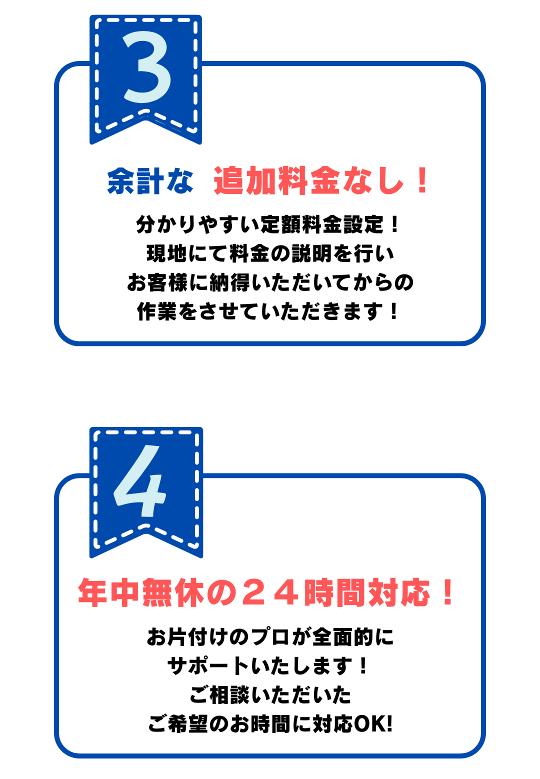 お片付けキャットでは料金体系が明確で分かりやすく、不当な追加費用
